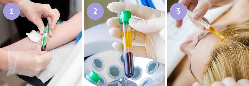 Під впливом відцентрової сили на дно колби осідають еритроцити, тромбоцити та лейкоцити, а зверху збирається плазма крові (жовтого кольору), збагачена високою концентрацією корисних речовин та будівельних мікроелементів. Плазма набирається в шприц, після чого за допомогою мезотерапії (мікроуколів) вводиться під шкіру для вирішення тих чи інших завдань.